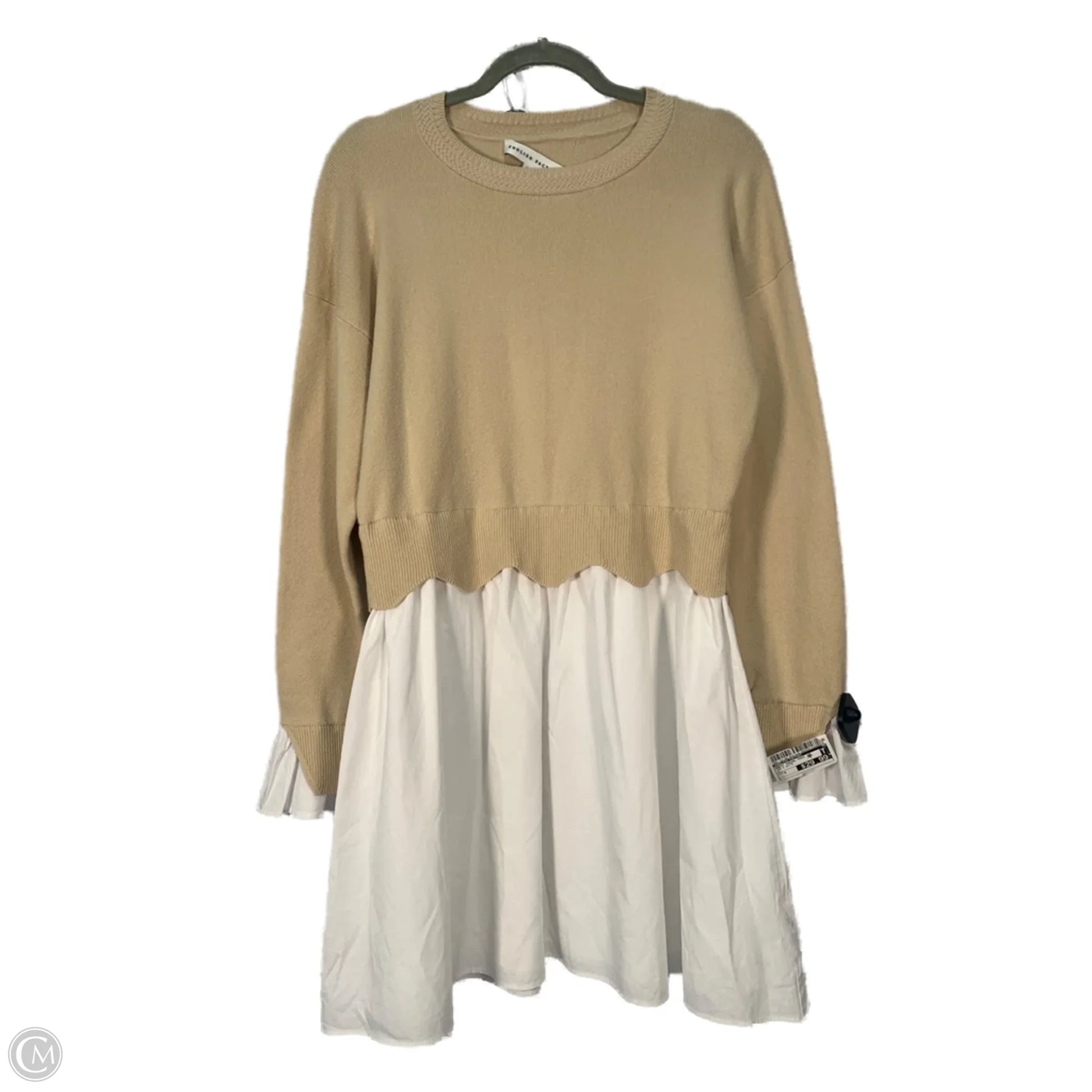 Dress Casual Midi By English Factory In Tan & White, Size: S