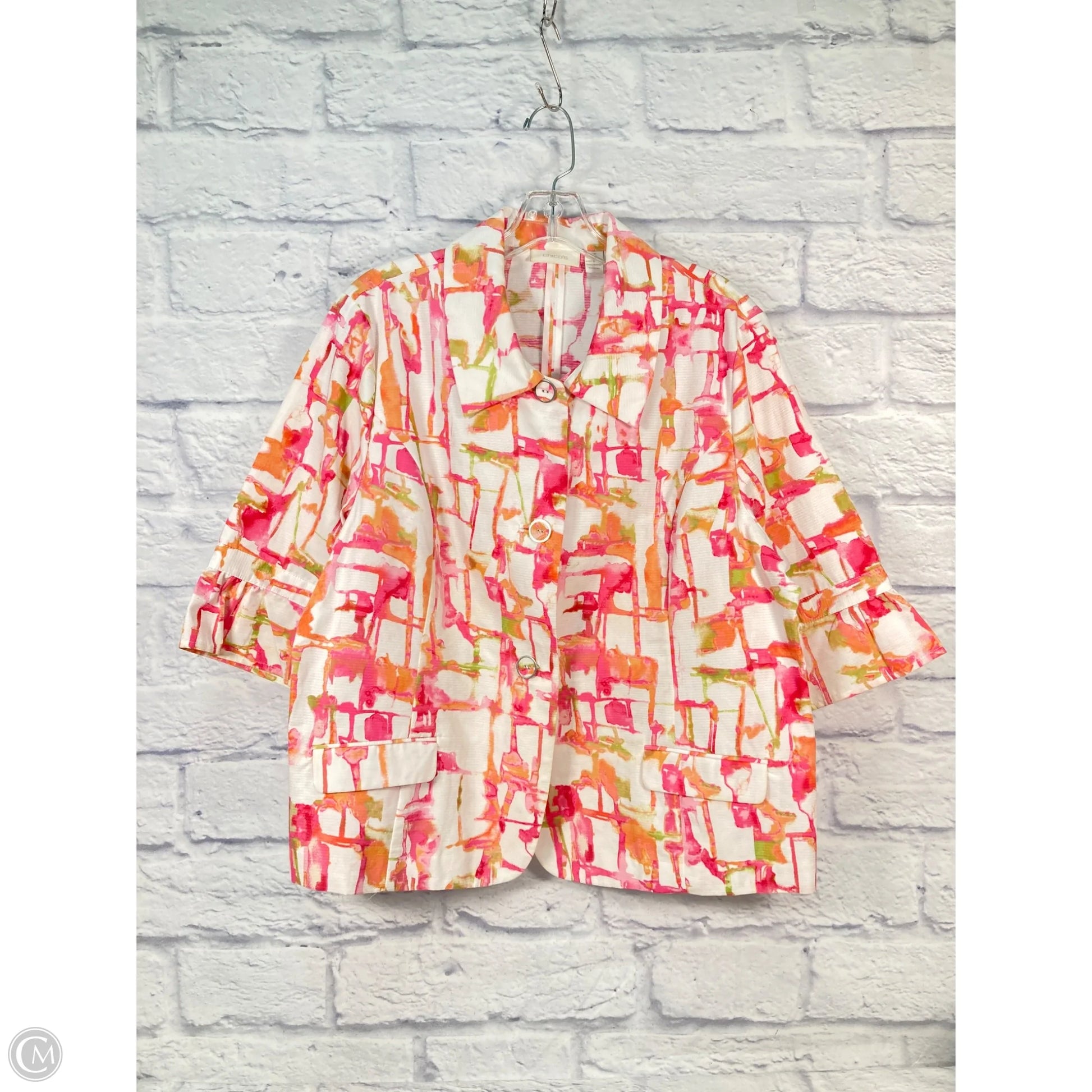Jacket Other By Chicos In Green & Pink, Size: Xl