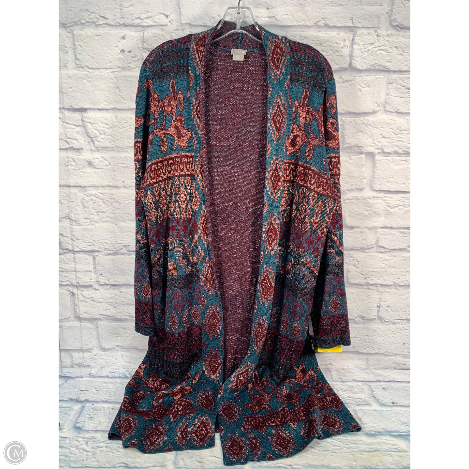 Sweater Cardigan By Chicos In Green & Purple, Size: Xl