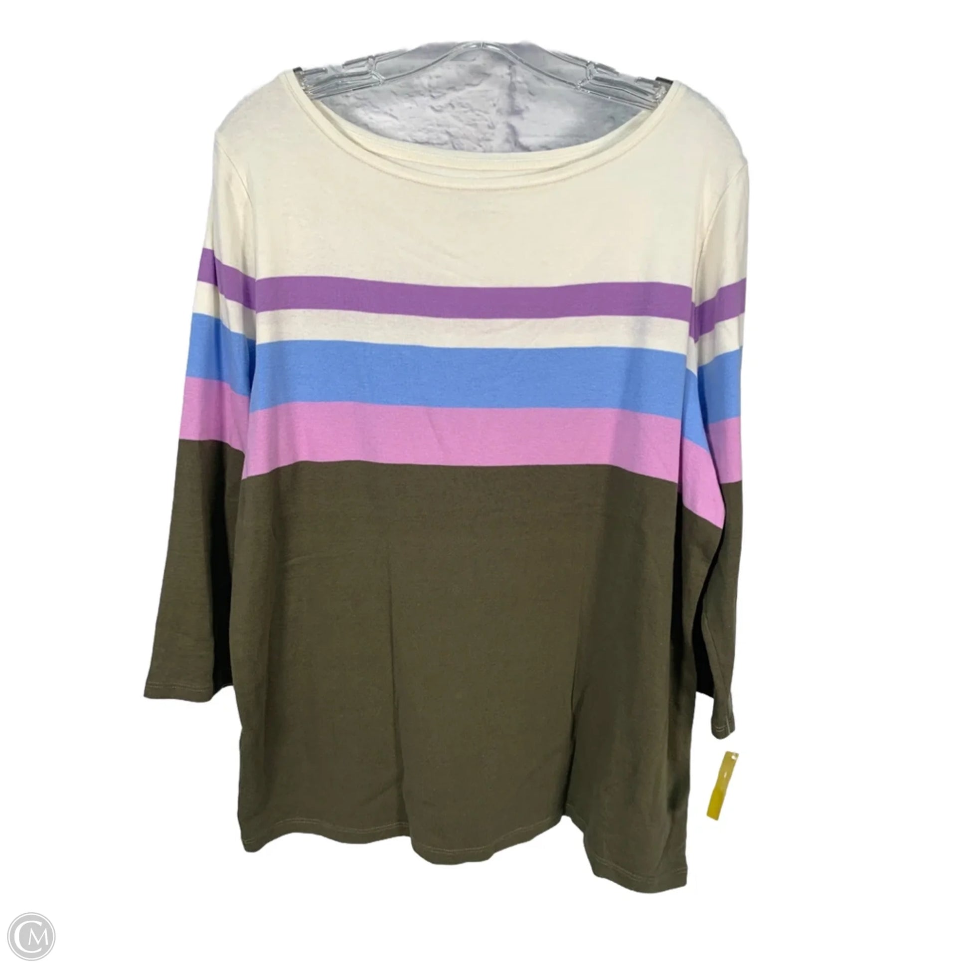 Top Long Sleeve Basic By Talbots In Cream & Green, Size: 2x
