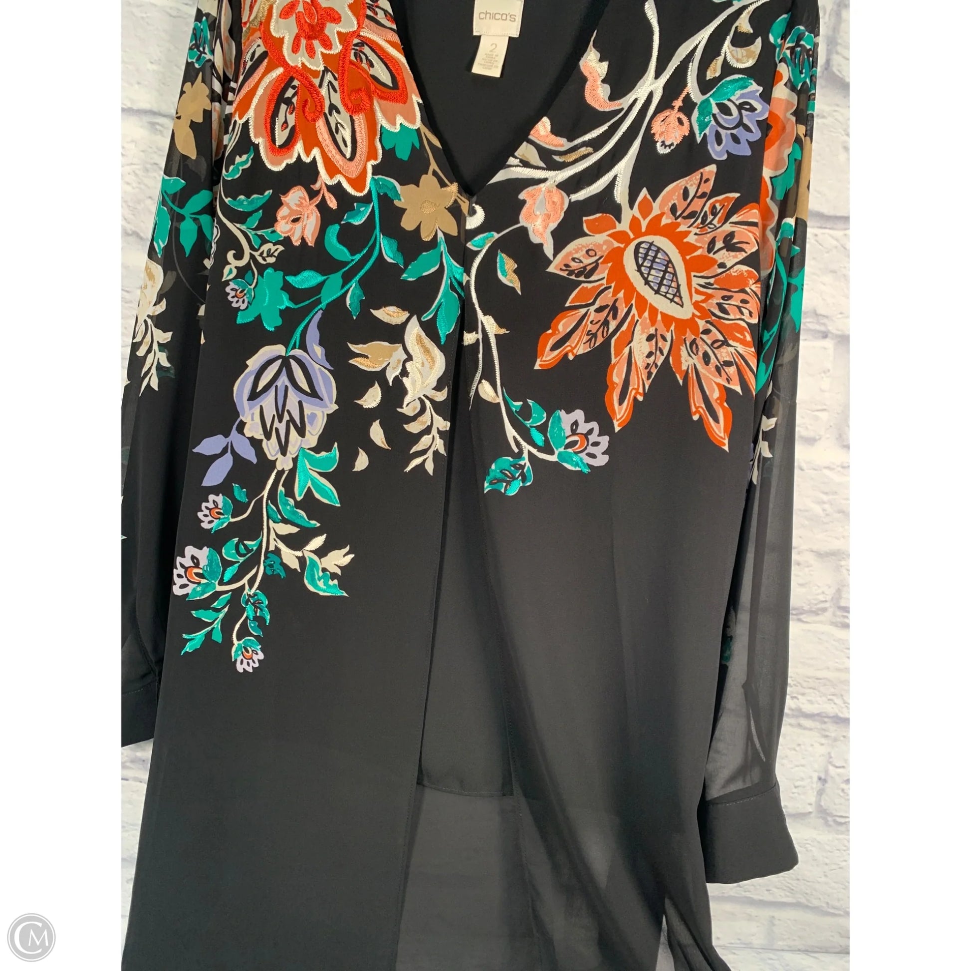 Tunic Long Sleeve By Chicos In Black & Green, Size: L